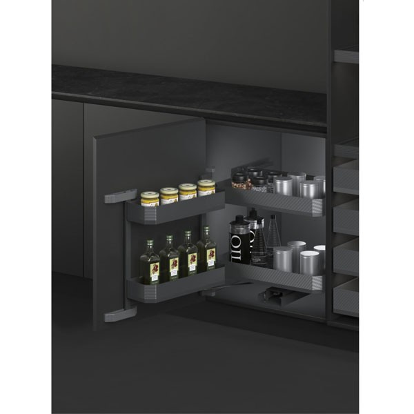The linkage design of the basket and the door makes full use of the depth space. Gently pull the whole cabinet to slide out. by reasonably layering the partition, kitchen items are avoided from piling up inside the floor cabinets and causing clutter.